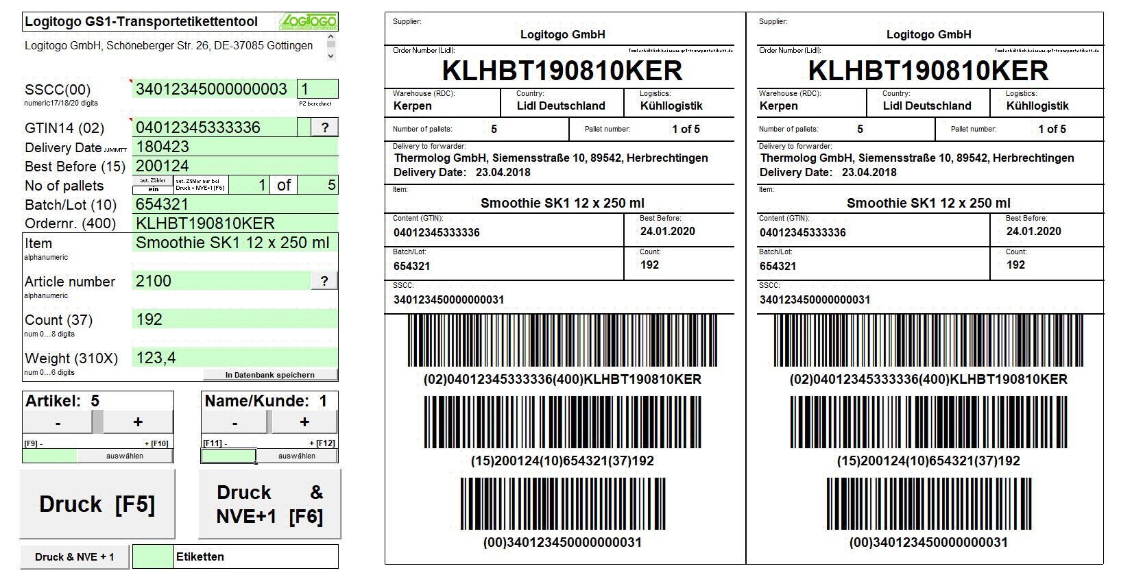 该工具有 12 种不同的布局(2 行和 3 行条形码),包括条形码字体和集成数据库。该工具非常简单,您可以在下面看到用户界面和数据库。您可以在主页上找到测试版本 - 该工具的前提条件是 2007 年的 MS Excel