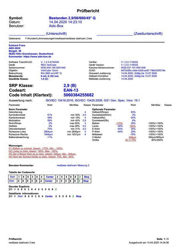 AIDC-BOX 与 Ihnen genau das 相同,是 Sie zur Vermessung Ihrer Codes gemäß ISO / ANSI Benötigen und hält Ihre Geräte auf dem neuesten Stand。